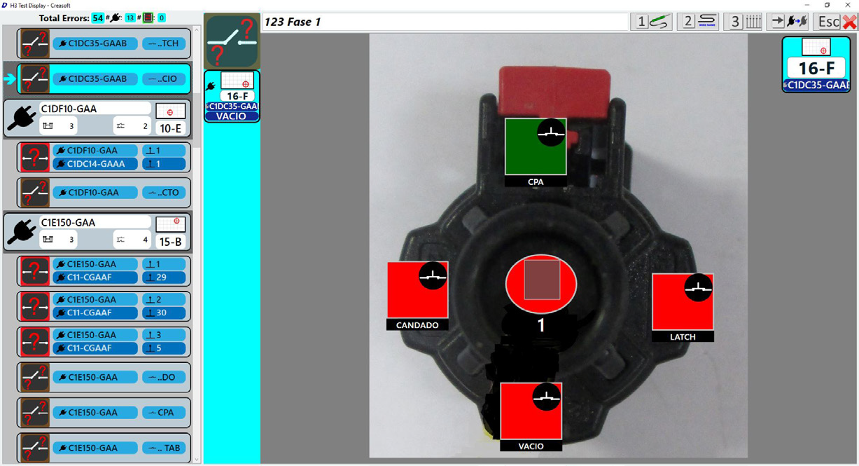 The system supports multiple test terminals on a single test board. Each terminal displays errors located in proximity to that terminal, enabling multiple operators to work simultaneously on error correction.