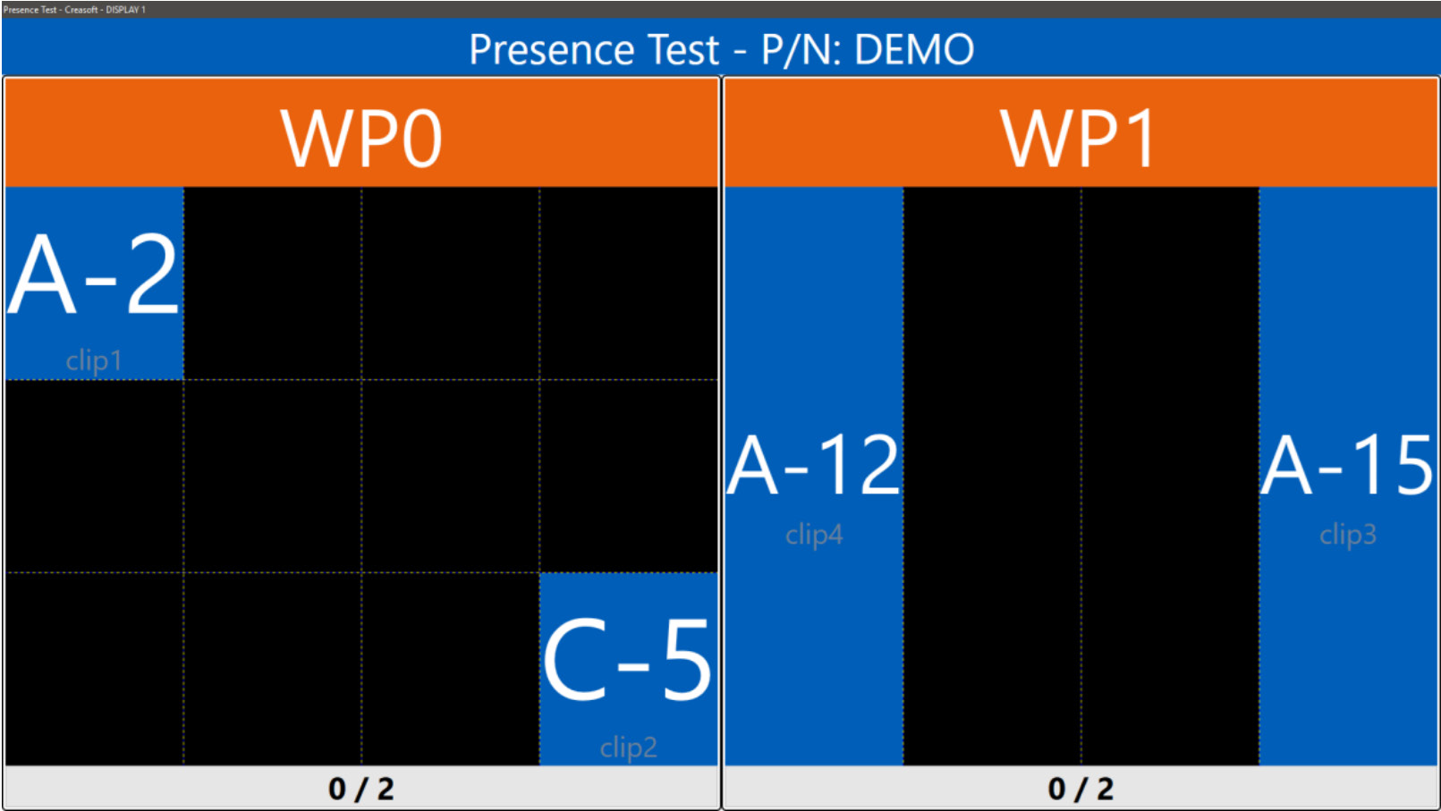 The Presence Test is a complete solution for clip presence verification. It enables the test board to be divided into multiple areas, with each area assigned to a specific workstation or operator. The system supports operation with both wired fixtures and RF fixtures (wireless detection systems).