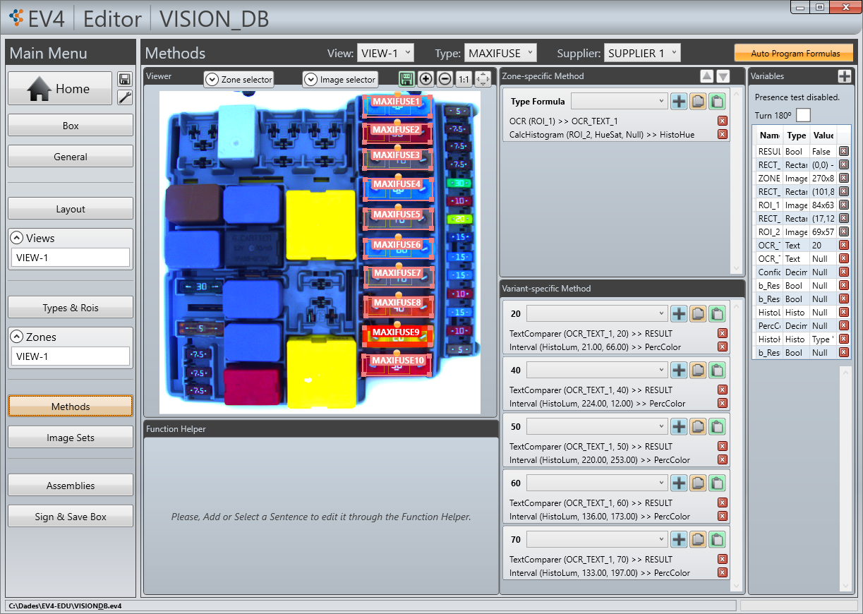 The compact hardware adapts to any fuse box size and can be used as a standalone solution or in combination with the EV4 Vision system. The graphic software environment offers dedicated applications for editing and testing, supports fast calibration, and links all measurement data with visual inspection results.
